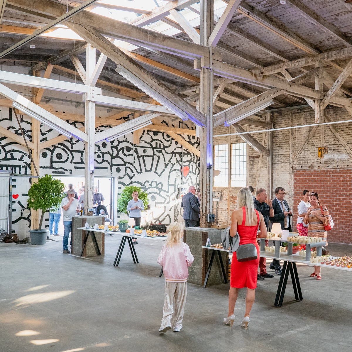 Der Charme der ehemaligen Pakethalle in Coburg blieb durch geringe bauliche Eingriffe erhalten; jetzt finden hier Veranstaltungen der lokalen Kreativwirtschaft statt.