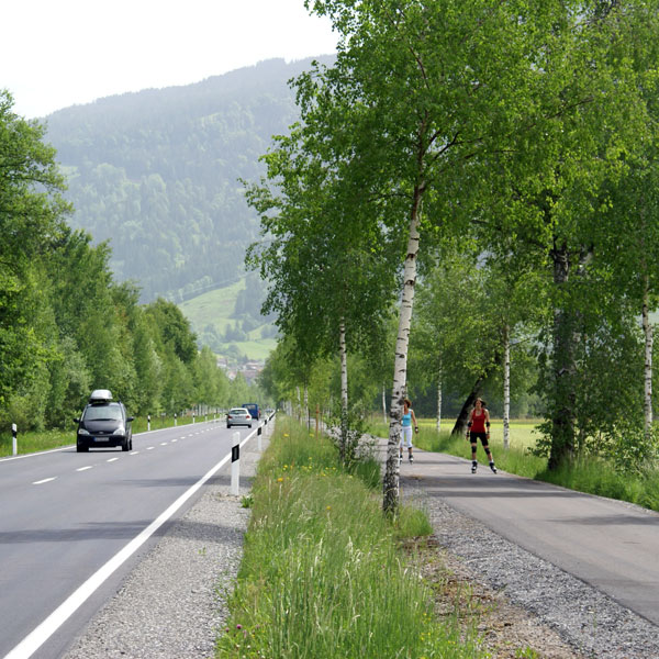 Gute Grüngestaltung der Straße bezieht sich immer auf die Landschaft. Werden vorhandene Vegetationsstrukturen auf den Böschungen weitergeführt, Strukturbesonderheiten wie Felsen herausgearbeitet und standortgerechte, heimische Ansaaten und Gehölze verwendet, erhalten Straßen ein regionaltypisches Gesicht. Mit Alleen und Bäumen lässt sich im besonderen Maße die Landschaft entwickeln und die Kulturlandschaft bereichern.
