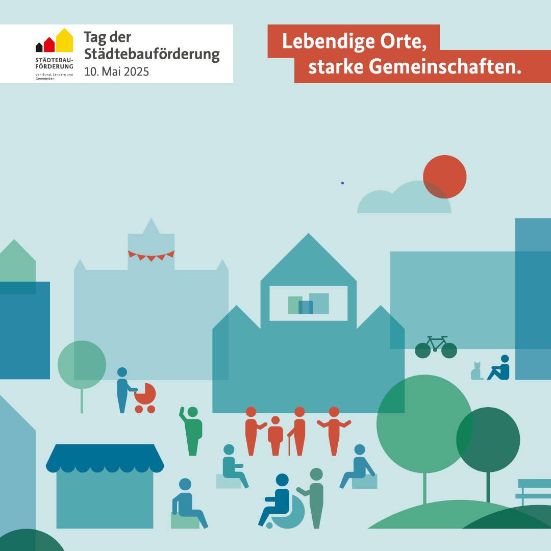 Am Samstag, den 10. Mai 2025, findet deutschlandweit der Tag der Städtebauförderung unter dem Motto „Lebendige Orte, starke Gemeinschaften“ statt. Auch zahlreiche bayerische Städte, Märkte und Gemeinden werden Projekte, die sie mit Unterstützung der Städtebauförderung umgesetzt haben, vorstellen und freuen sich auf Ihren Besuch. Der Tag der Städtebauförderung ist eine gemeinsame Initiative des Bundesministeriums für Wohnen, Stadtentwicklung und Bauwesen, der Länder, des Deutschen Städtetages und des Deutschen Städte- und Gemeindebundes. tag-der-staedtebaufoerderung.de