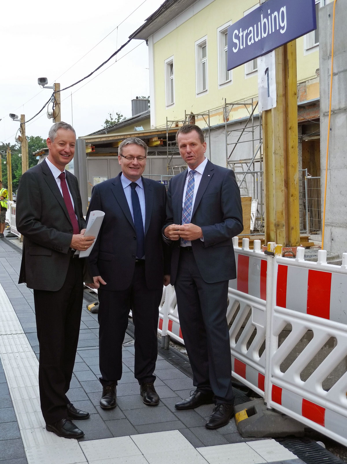 "Damit ist Straubing über die Schnellfahrstrecken durch Thüringen in weniger als fünf Stunden mit der Bundeshauptstadt verbunden“, sagt der bayerische Konzernbevollmächtigte Klaus-Dieter Josel bei einem Vor-Ort-Termin mit dem bayerischen Verkehrsstaatssekretär Josef Zellmeier und dem Straubinger Oberbürgermeister Markus Pannermayer.