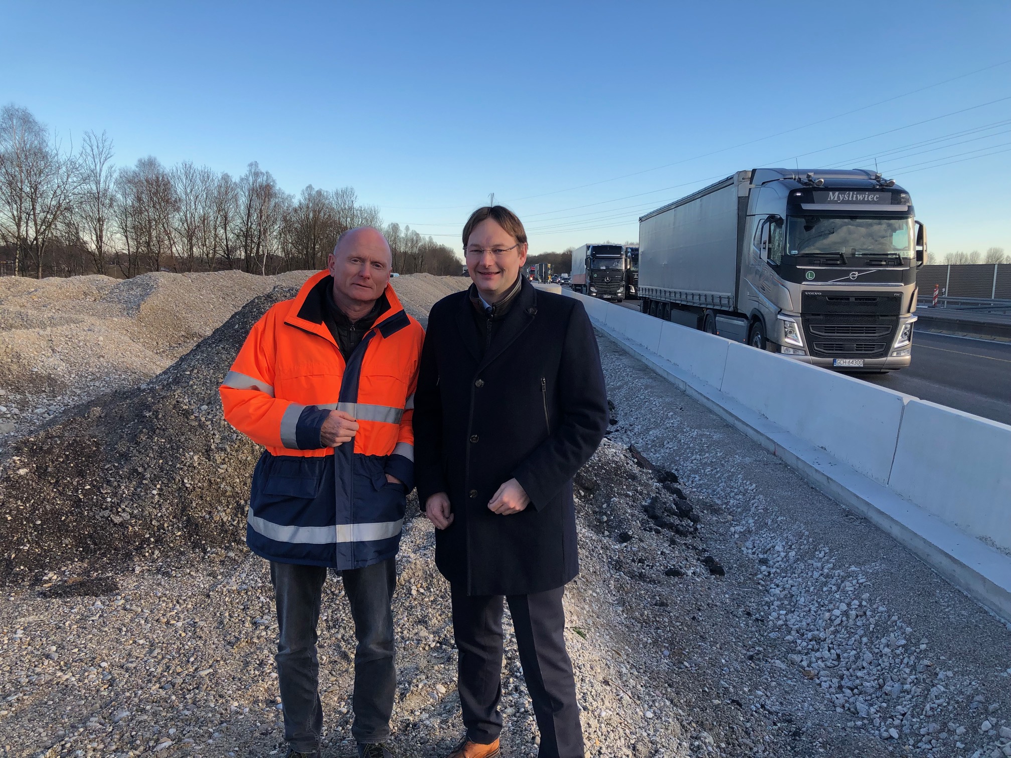 Staatsminister Hans Reichhart besichtigt die Baumaßnahmen an der A 99