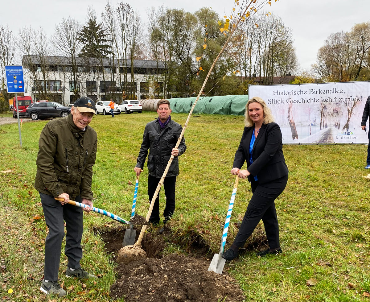 Die Gemeinde Taufkirchen setzt sich auf private Initiative von Franz Greif und seiner Tochter Brigitte Koch schon seit einiger Zeit für Nachpflanzungen an der Birkenallee ein. Allerdings müssen Bäume in einem ausreichenden Abstand zum Fahrbahnrand stehen, um schwere Unfälle zu vermeiden. Eine Pflanzung wäre deshalb ohne den Kauf von angrenzenden Grundstücken nicht möglich gewesen. „Die Verkehrssicherheit hat natürlich immer Vorrang“, betonte Verkehrsministerin Schreyer. „Inzwischen wurde hier aber die zulässige Höchstgeschwindigkeit auf 50 km/h reduziert. Damit ist auch ein geringerer Abstand von Bäumen zur Fahrbahn zulässig.“
