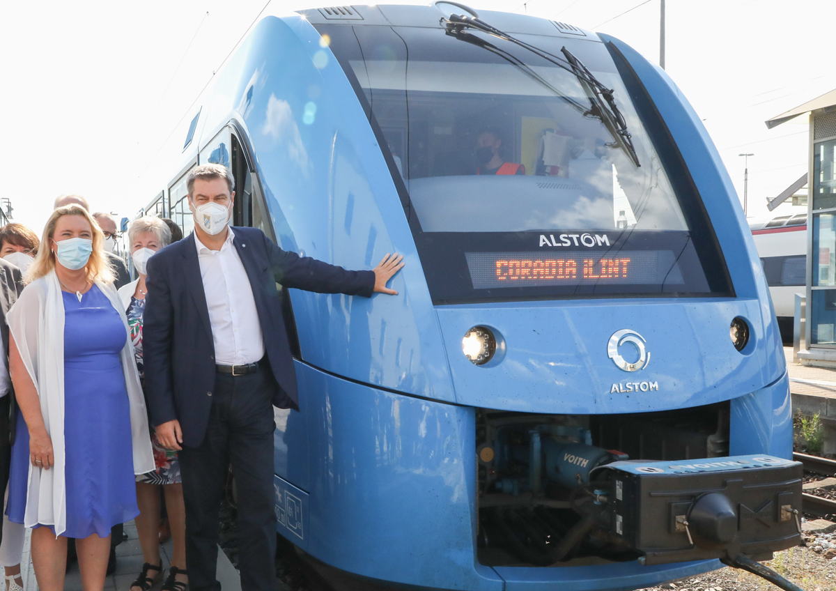 Ministerpräsident Dr. Markus Söder: „Wir wollen mit neuer Technologie zur Klimaneutralität. Hierzu ist Wasserstoff ein wichtiger Beitrag. Das schützt das Klima und schafft Arbeitsplätze. Bis 2040 sollen die Züge von Diesel auf alternative Antriebe umgestellt sein."