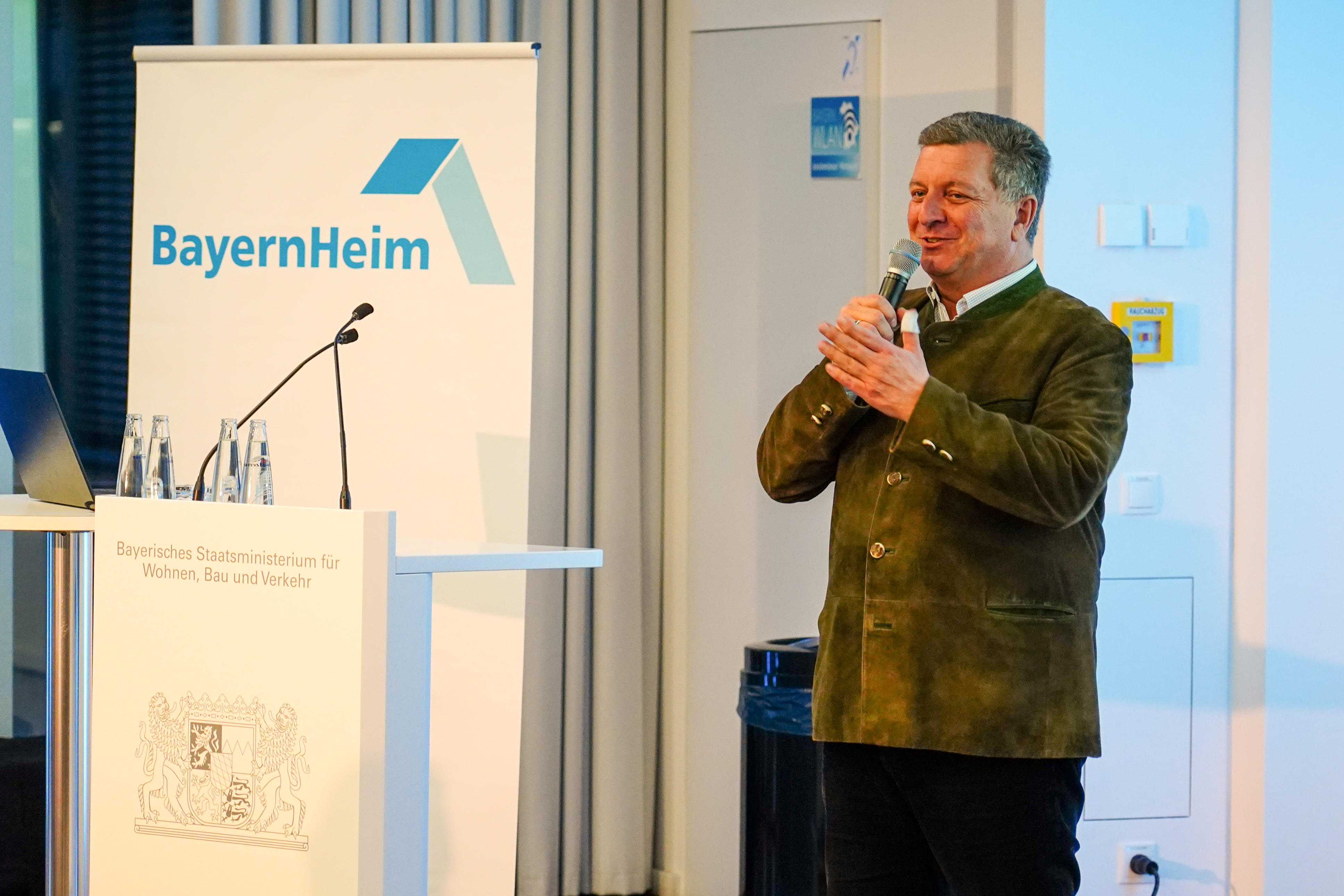 Neben einem Grußwort von BayernHeim-Geschäftsführer Ralph Büchele und der Rede von Bauminister Christian Bernreiter hat bei dem Treffen auch BayernLB-Vorstand Gero Bergmann einen Impulsvortrag zur Perspektive in der Immobilienfinanzierung gehalten. Der Freistaat Bayern investiert kontinuierlich auf sehr hohem Niveau in den Wohnungsbau: 2023 steht erstmals 1 Milliarde Euro für Wohnraumförderungsprogramme bereit.