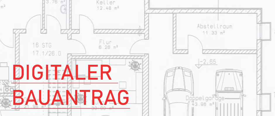Ausschnitt eines Bauantrags. Unten links in roter Schrift: Digitaler Bauantrag