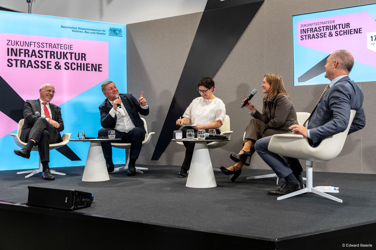 Beim Foyer Dialog am 17. November 2025 diskutierten Spitzenvertreter aus Politik, Bahn, Autobahn GmbH und Bauindustrie über Investitionen, Sondervermögen, neue Technologien und die großen Herausforderungen für Bayerns Infrastruktur.