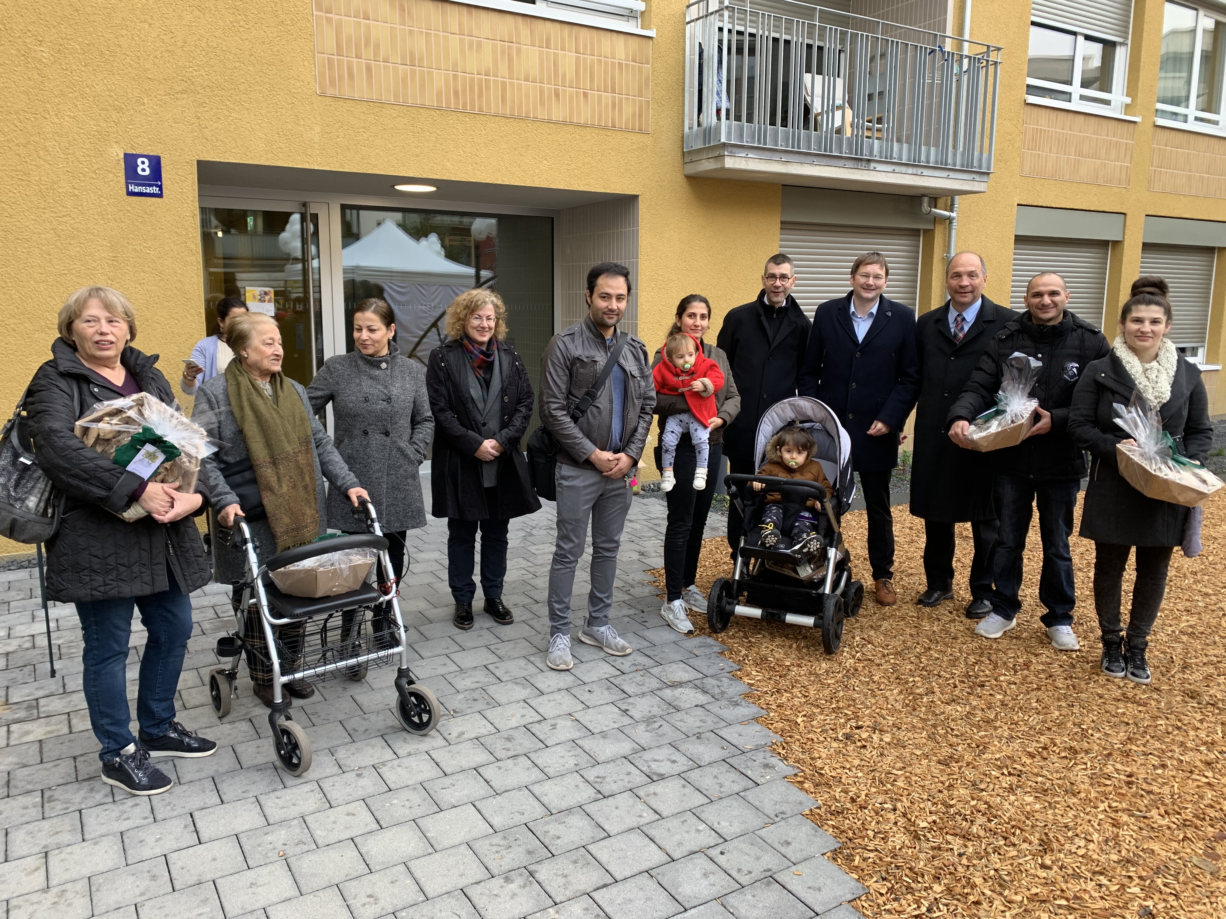 Nur 16 Monate nach Gründung der BayernHeim GmbH sind die ersten Wohnungen bezugsfertig: Mit Brot und Salz im Gepäck kam Bayerns Bauminister Hans Reichhart heute persönlich vorbei, um die ersten Mieterinnen und Mieter der BayernHeim GmbH in ihren neuen vier Wänden zu begrüßen. In der Hansastraße im Münchner Stadtteil Sendling-Westpark ist die neue Wohnanlage der staatlichen Wohnungsbaugesellschaft BayernHeim nun fertig zum Bezug. In zentraler Lage sind hier insgesamt 71 bezahlbare Wohnungen entstanden. „Familien mit kleinen und mittleren Einkommen haben es gerade in der Metropolregion München besonders schwer, erschwinglichen Wohnraum zu finden. Mit unserer Wohnungsbaugesellschaft BayernHeim schaffen wir bezahlbaren Wohnraum für Menschen, die auf dem angespannten Markt keine Chance auf eine angemessene Wohnung haben. Es freut mich daher sehr, dass wir hier mitten in der Stadt Wohnungen zu bezahlbaren Mieten anbieten können. Sendling-Westpark ist erst der Anfang – wir haben bayernweit Projekte in der Pipeline“, so Reichhart heute.