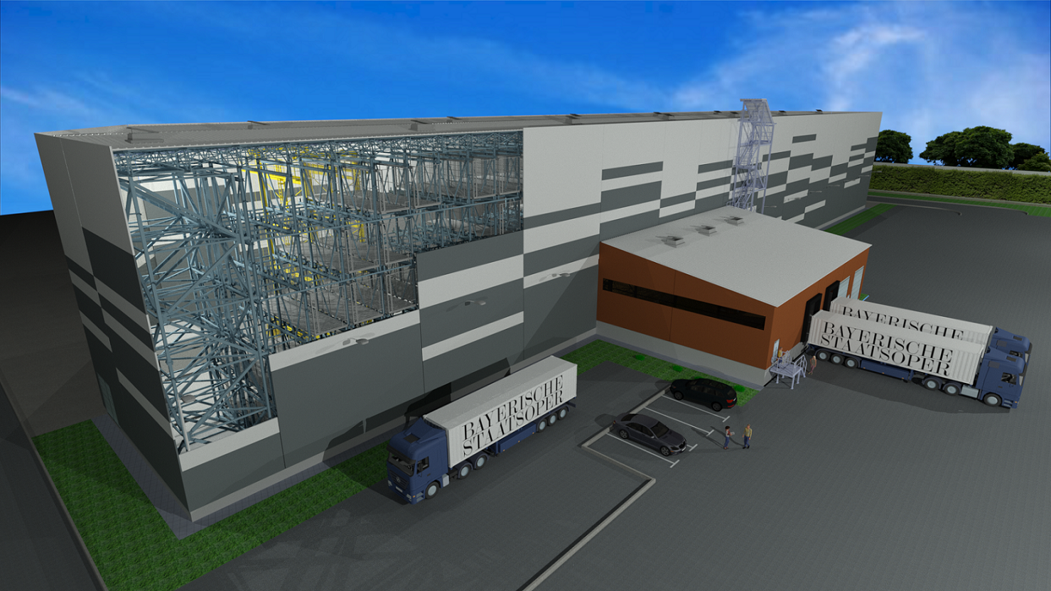 Die Dekorationslagerhalle wird aus großen Regalen aus insgesamt 1.000 Tonnen Stahl bestehen, in die auf fünf Ebenen mehr als 440 riesige Gitterboxen eingelagert werden können. Um den vorhandenen Raum optimal zu nutzen, wird das Gebäude in sogenannter Silobauweise errichtet. Bei dieser Bauweise bildet das Regalsystem die tragende Struktur des Gebäudes und somit auch das Gerüst für die Fassade und das Dach. Die großen Gitterboxen, in denen die zerlegbaren Bühnendekorationen eingelagert werden sollen, werden von Spezial-Lkw der Bayerischen Staatsoper angeliefert und an den zugehörigen Versandbereich der Halle übergeben. Von dort übernimmt ein Regalbediengerät die automatisierte Einlagerung der Gitterboxen in die Ebenen des Hochregallagers.
