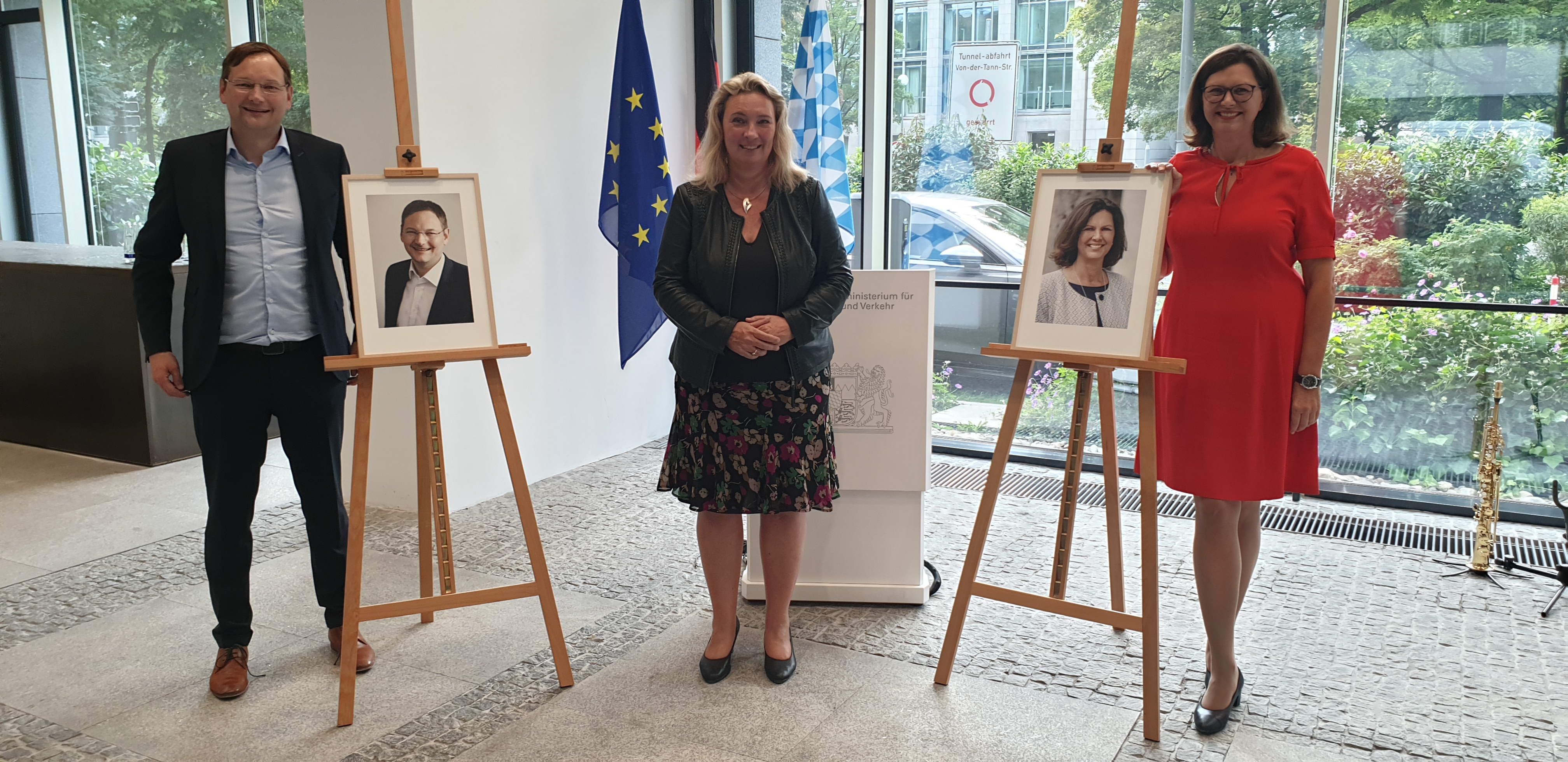 Die Bayerische Staatsministerin für Wohnen, Bau und Verkehr, Kerstin Schreyer, hat heute die Porträts ihrer beiden Amtsvorgänger im Ministerium enthüllt. Damit ehrt Schreyer die erste Ministerin in diesem Amt und jetzige Landtagspräsidentin, Ilse Aigner, sowie ihren direkten Vorgänger und jetzigen Landrat von Günzburg, Dr. Hans Reichhart. „Mir war es ein persönliches Anliegen, dass wir hier als Anerkennung der großen Leistung der Vorgänger eine Porträtgalerie der ehemaligen Ministerinnen und Minister schaffen und damit eine neue Tradition begründen“, so die amtierende Ministerin.