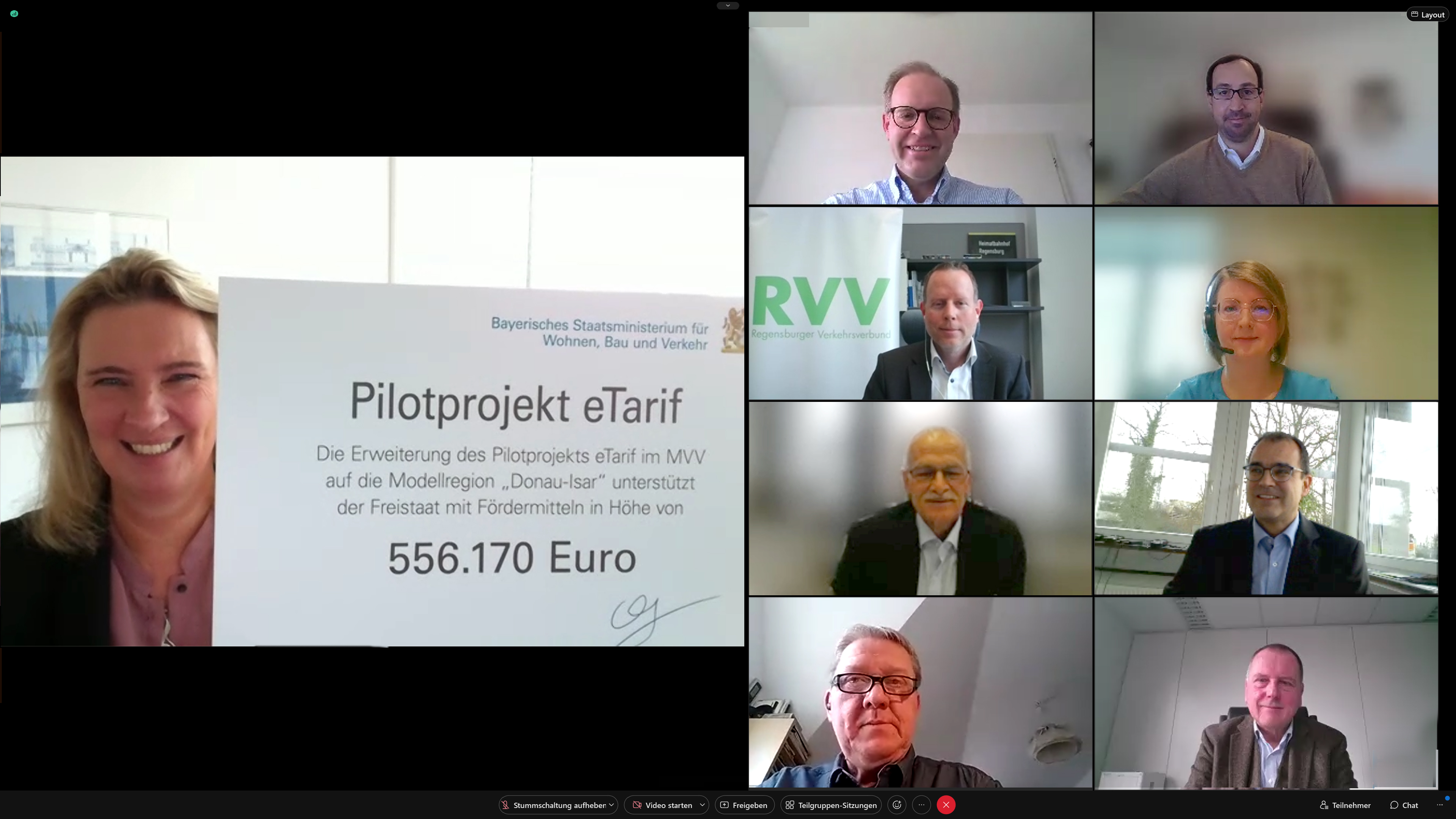 „Mit der Förderzusage des Freistaats werden wir im Regensburger Verkehrsverbund erstmals einen luftlinienbasierten eTarif ausprobieren,“ ergänzt Kai Müller-Eberstein, Geschäftsführer des RVV. „Mit der Adaption des Münchner Projektes haben wir uns bewusst dafür entschieden, ein bereits laufendes System für einen eTarif im RVV zu nutzen, um im nächsten Schritt gemeinsam mit den Bahnunternehmen ein verbundübergreifendes Ticket zu testen.“