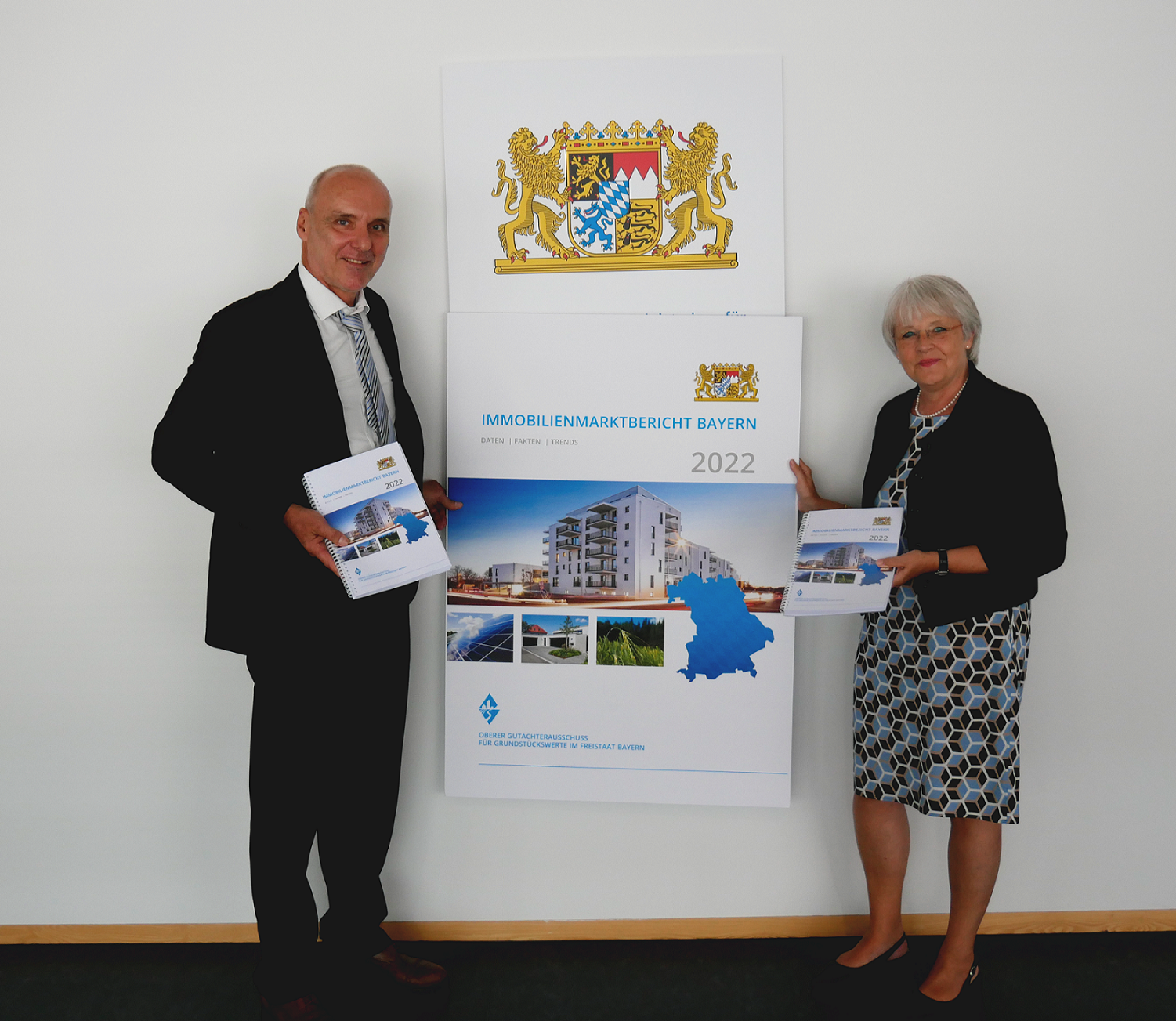 Seit 2016 erarbeitet der Obere Gutachterausschuss alle zwei Jahre mit dem Immobilienmarktbericht Bayern eine fundierte Übersicht über die Entwicklung des Grundstücksmarkts im Freistaat. Der Immobilienmarkt ist einer der wichtigsten Indikatoren für die Entwicklung der Gesamtwirtschaft, da hierbei der gesamte Bereich der Bauwirtschaft und des Wohnungsbaus abgebildet wird. Nach der coronabedingten Sonderausgabe im letzten Jahr stellten heute Ingrid Simet, Ministerialdirektorin im Staatsministerium für Wohnen, Bau und Verkehr und der Vorsitzende des Oberen Gutachterausschusses Maximilian Karl die reguläre Ausgabe für das Jahr 2022 vor. Für Bayerns Bauminister Christian Bernreiter stellt der Immobilienmarktbericht eine unverzichtbare Datengrundlage dar: „Die Arbeit des Oberen Gutachterausschusses zeigt, dass der Immobilienmarkt in Bayern erstaunlich gut durch die Corona-Zeit gekommen ist und damit in den vergangenen beiden Jahren eine Stütze der Wirtschaft im Freistaat war. Mit den derzeit stark steigenden Bau- und Energiepreisen und den zunehmenden Lieferkettenproblemen warten aber schon neue Herausforderungen. Der regelmäßige Immobilienmarktbericht ist damit wichtiger denn je, um frühzeitig auf negative Entwicklungen reagieren zu können.“