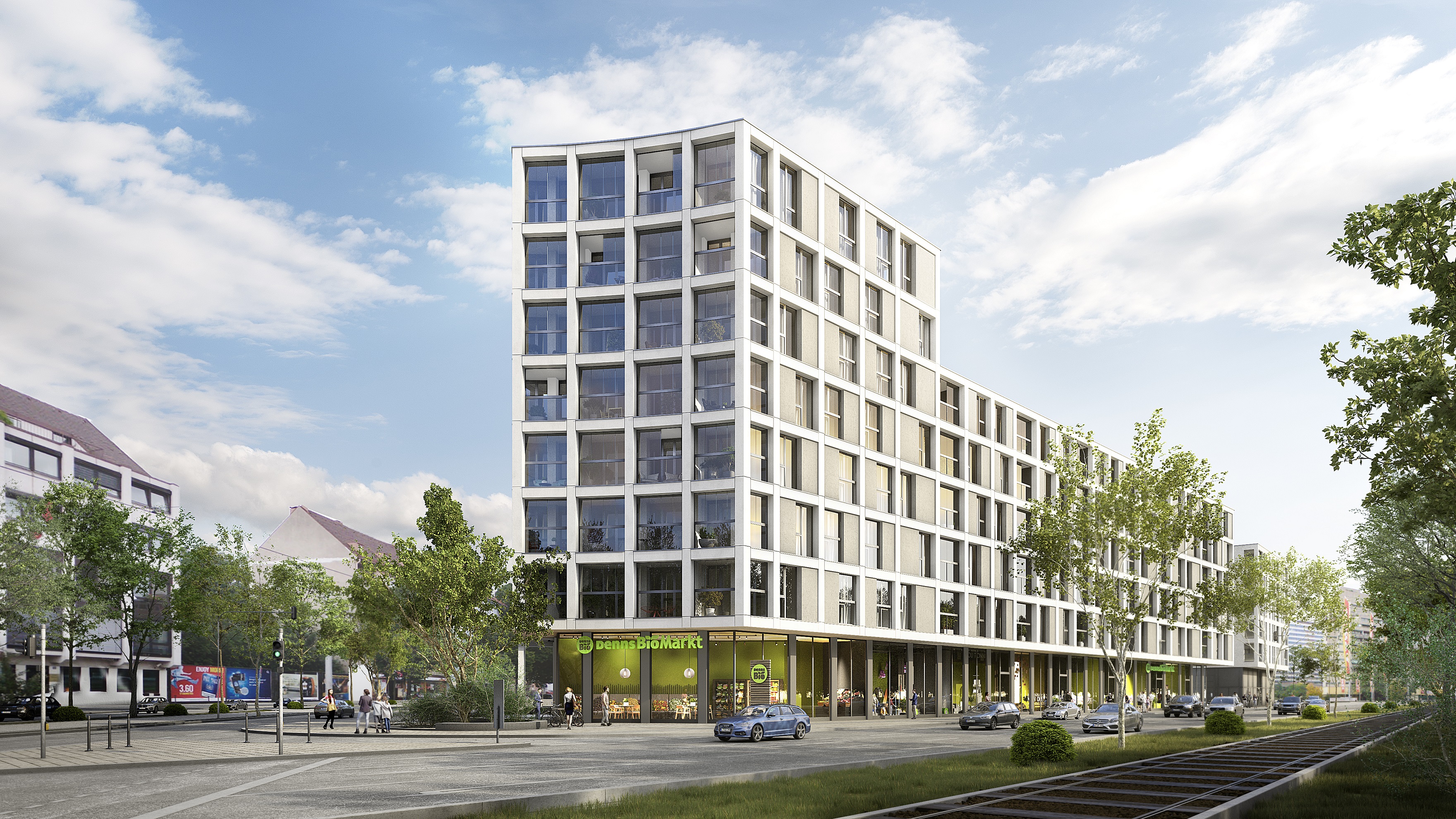 Im Architekturwettbewerb hatte sich das Münchner Büro Steidle Architekten durchgesetzt. Im Quartier Luitpoldviertel baut die KIB-Gruppe darüber hinaus rund 550 weitere Wohnungen und einen großen Edeka-Markt mit Bäckerei und Café.