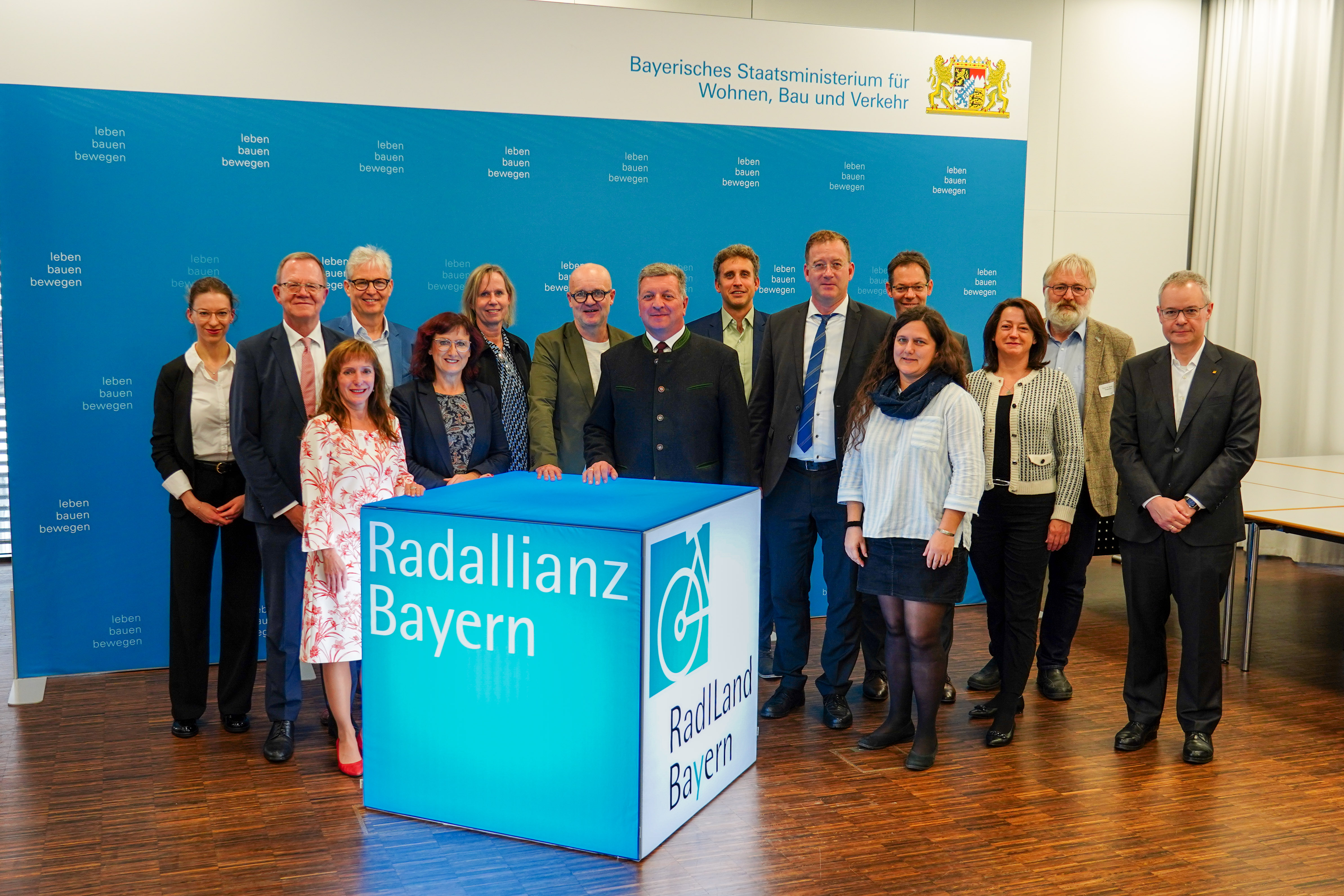 Bayerns Verkehrsminister Christian Bernreiter (8.v.l.) mit den Institutionen der Radallianz Bayern. (Quelle: StMB)