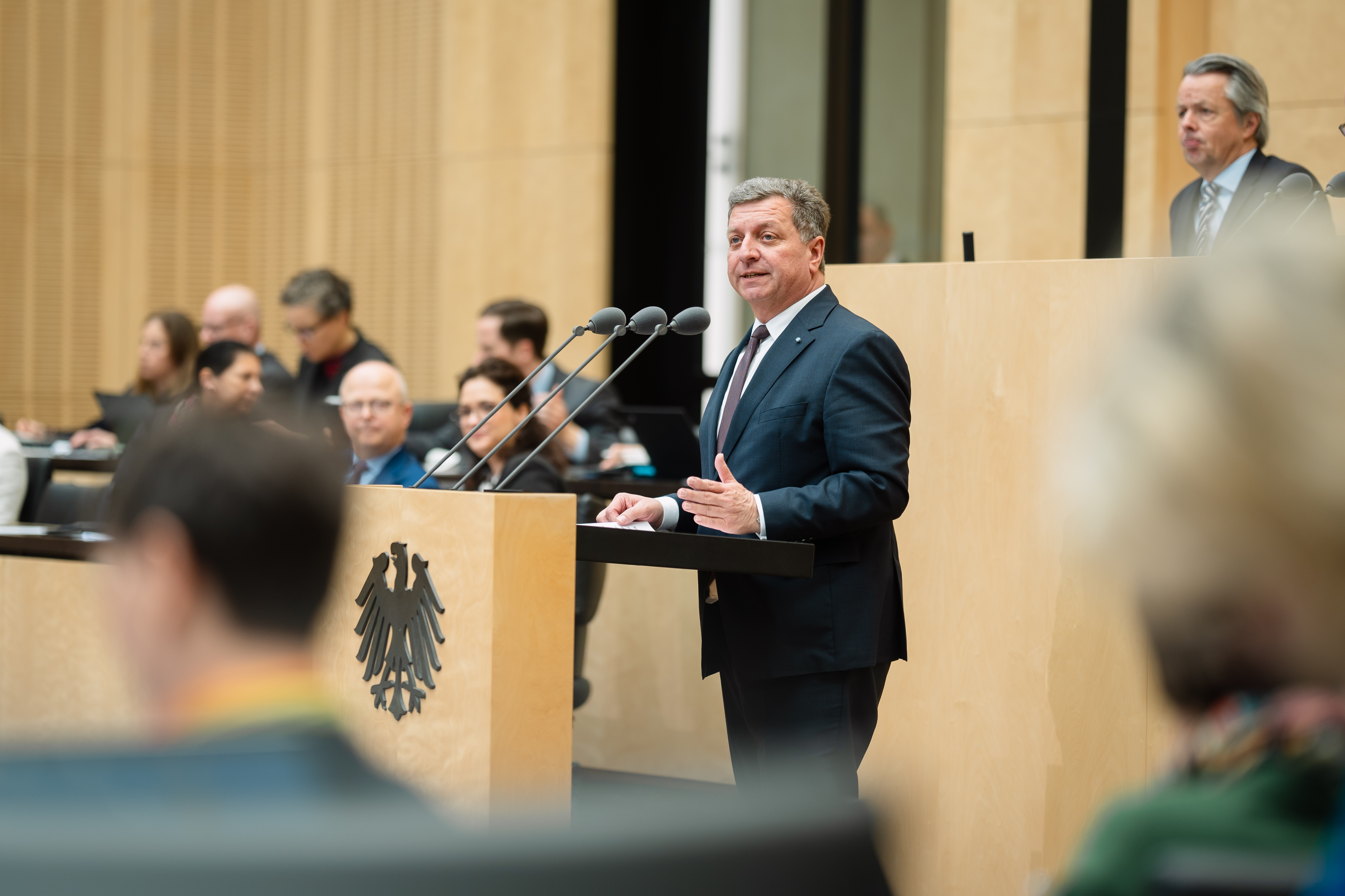 Foto: Bayerns Verkehrsminister Christian Bernreiter hat heute im Bundesrat Nachbesserungen beim Bundesschienenwegeausbaugesetz gefordert.