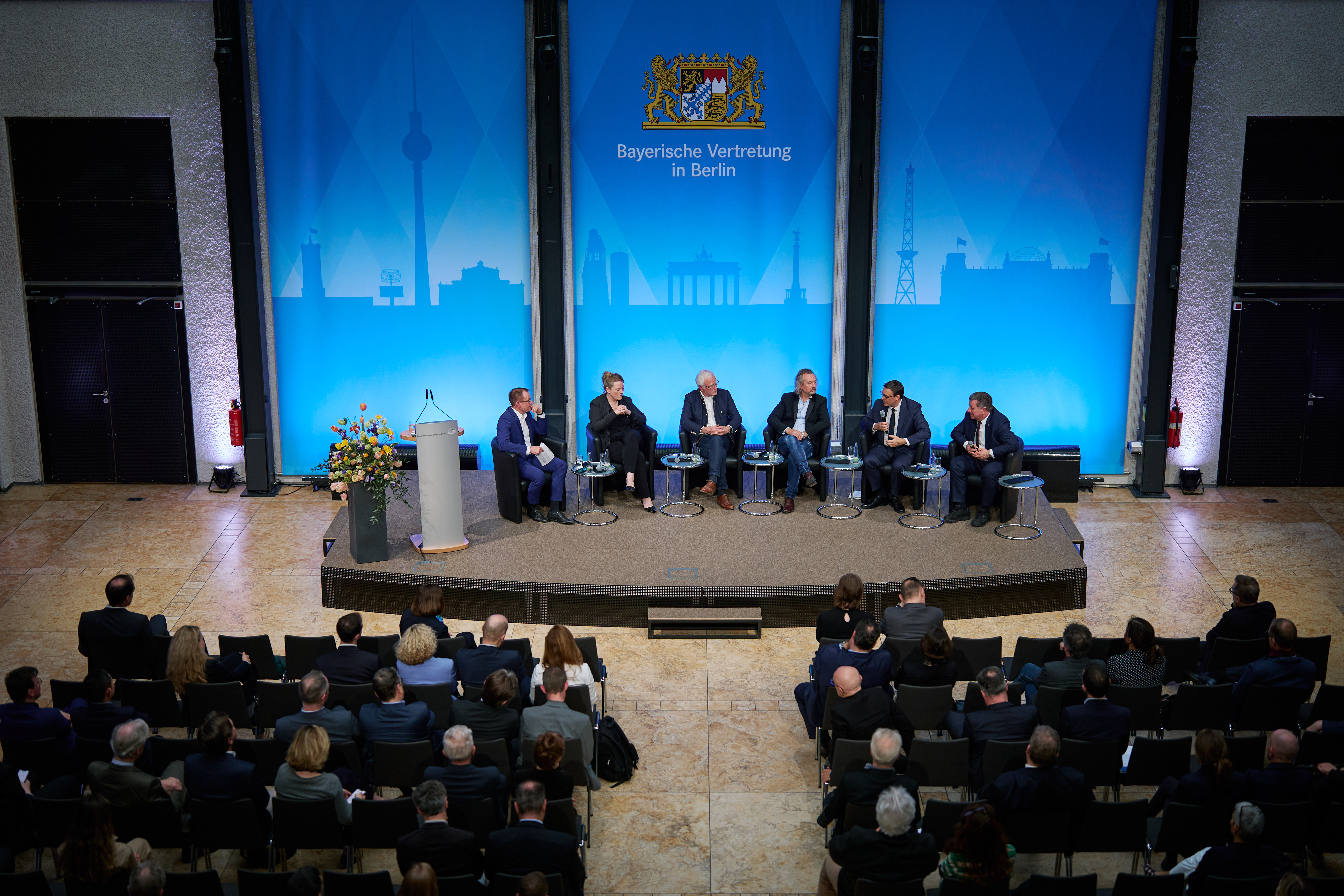 „Nachhaltiges Bauen und Kostensenkungen – Ein Spannungsverhältnis?“ – Unter diesem Motto hat Bayerns Bauminister Christian Bernreiter Experten aus Politik, Wissenschaft und Praxis zu einem Parlamentarischen Abend in die Bayerische Vertretung in Berlin geladen. „Wir haben uns ambitionierte Klimaziele gegeben, die uns auch im Bauwesen vor Herausforderungen stellen“, so Minister Bernreiter. „Nachhaltigkeit muss sich für Bauherren lohnen! Mir ist es daher wichtig, deutschlandweit mit politischen Entscheidern, Experten und Vertretern der Bauwirtschaft im Austausch zu sein. Wir brauchen neue Ansätze für ökologische, kostengünstige und energieeffiziente Bauweisen, neue Technologien und die richtigen gesetzlichen Rahmenbedingungen. Mit der Initiative „Sustainable Bavaria“ setzen wir gemeinsam mit den Bayerischen Bauverbänden auf Digitalisierung und ökologische Transformation der Bauwirtschaft.“