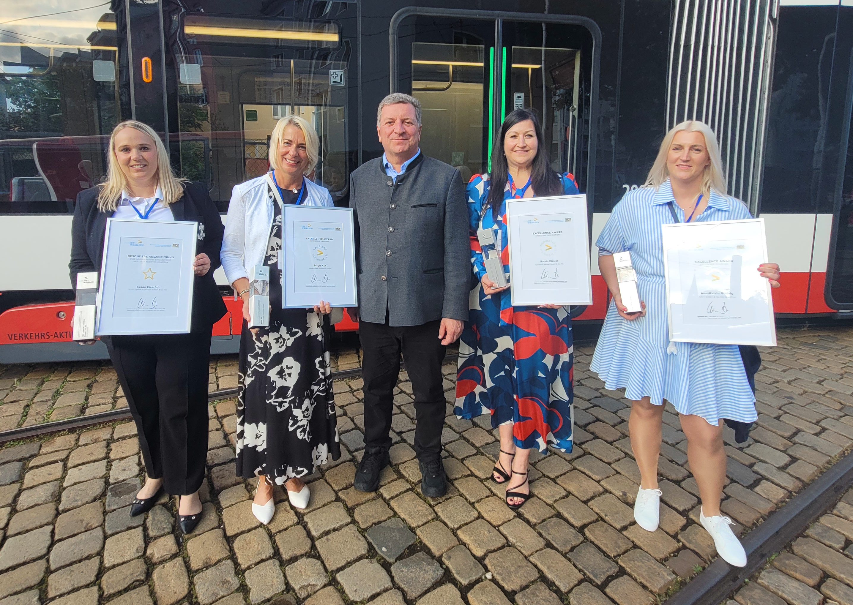 Knapp hundert geladene Gäste konnten mit den Preisträgerinnen und Staatsminister Bernreiter im Historischen Straßenbahndepot der Verkehrs-Aktiengesellschaft Nürnberg feiern. Für die Preisverleihung selbst ging es wieder mit einer hochmodernen Avenio-Niederflurstraßenbahn auf Stadtrundfahrt. „Mit Ihrem Einsatz machen Sie die vermeintliche ‚Männerwelt Logistik‘ weiblicher und vielfältiger und setzen sich für Gleichberechtigung und Chancengleichheit ein. Das ist ein wichtiger Beitrag für die Zukunft der Logistik- und Transportbranche und für unsere Gesellschaft“, lobte Bernreiter die Preisträgerinnen in seiner Laudatio.