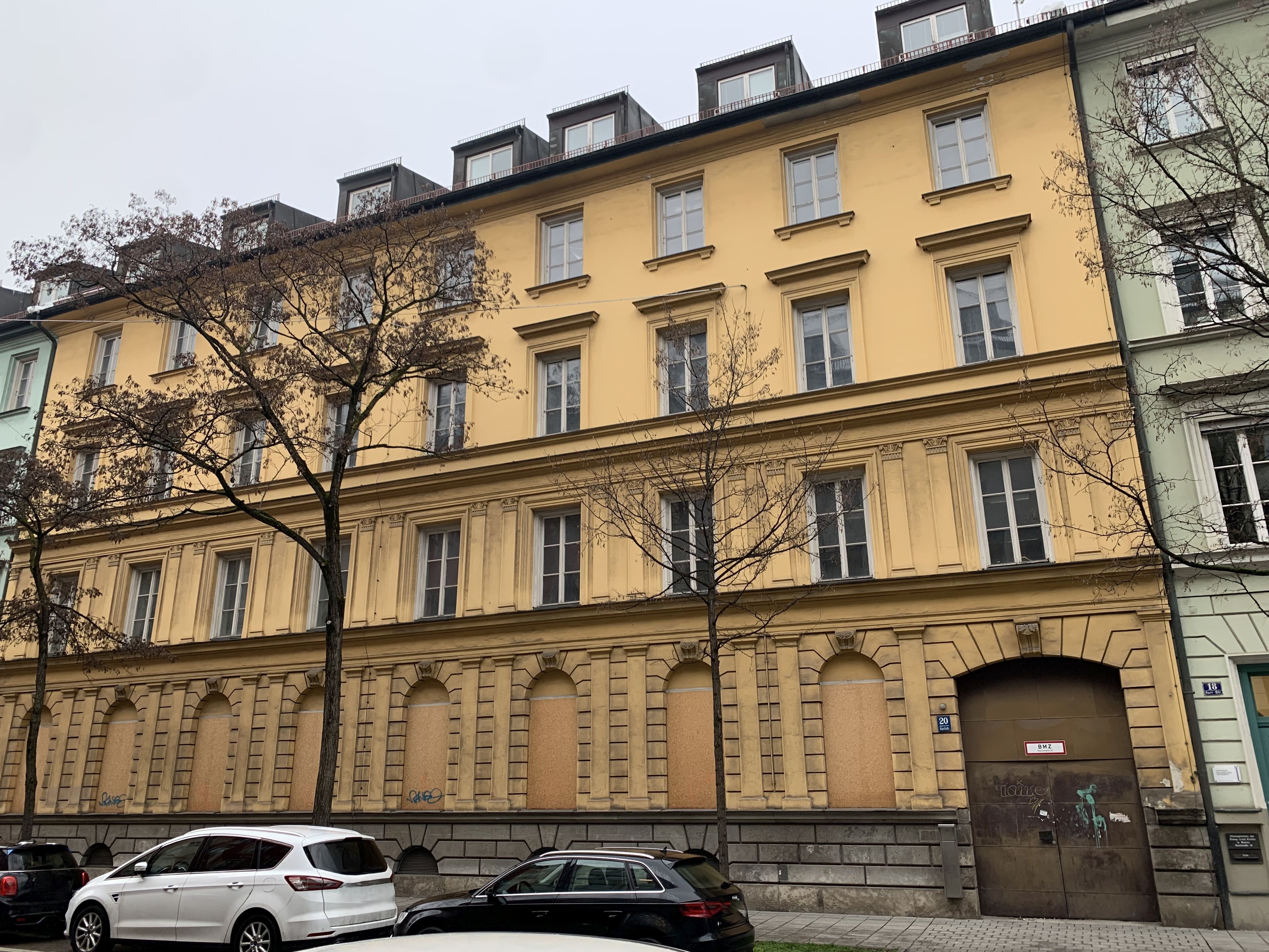 Die beiden Gebäude blicken auf eine fast 200 Jahre lange Geschichte zurück: 1828 von Architekt Rudolf Röschenauer als vierstöckige Wohnhäuser errichtet, erfolgte Anfang der 1930er-Jahre ein Umbau in Büro- und Verwaltungsgebäude. Nach Kriegsschäden 1947 wiederinstandgesetzt, war dort bis 2007 unter anderem das Landesamt für Steuern untergebracht. Von 2015 bis 2018 dienten sie als Unterkunft für Asylsuchende, seither standen sie wegen Wasserschäden leer. Beide Gebäude sind klassizistische Einzeldenkmäler und stehen gemeinsam mit der Karlstraße 18 unter Ensembleschutz. Insbesondere erhaltenswert sind die klassizistische Fassade entlang der Karlstraße, die Holzbalkendecken, Teile des Dachstuhls und die Parkettfußböden.